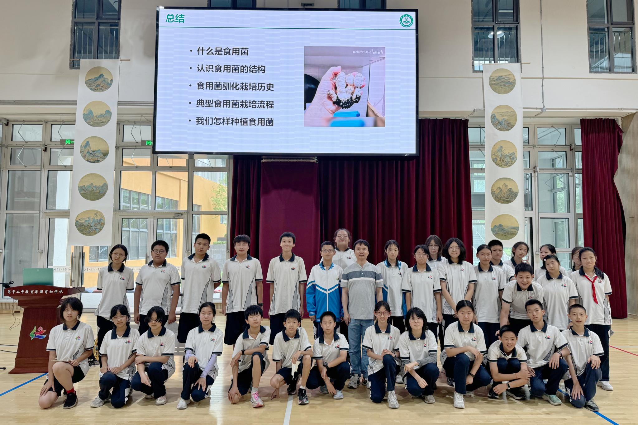 公司教授为昌平二中育知公司初中部作食用菌科普讲座