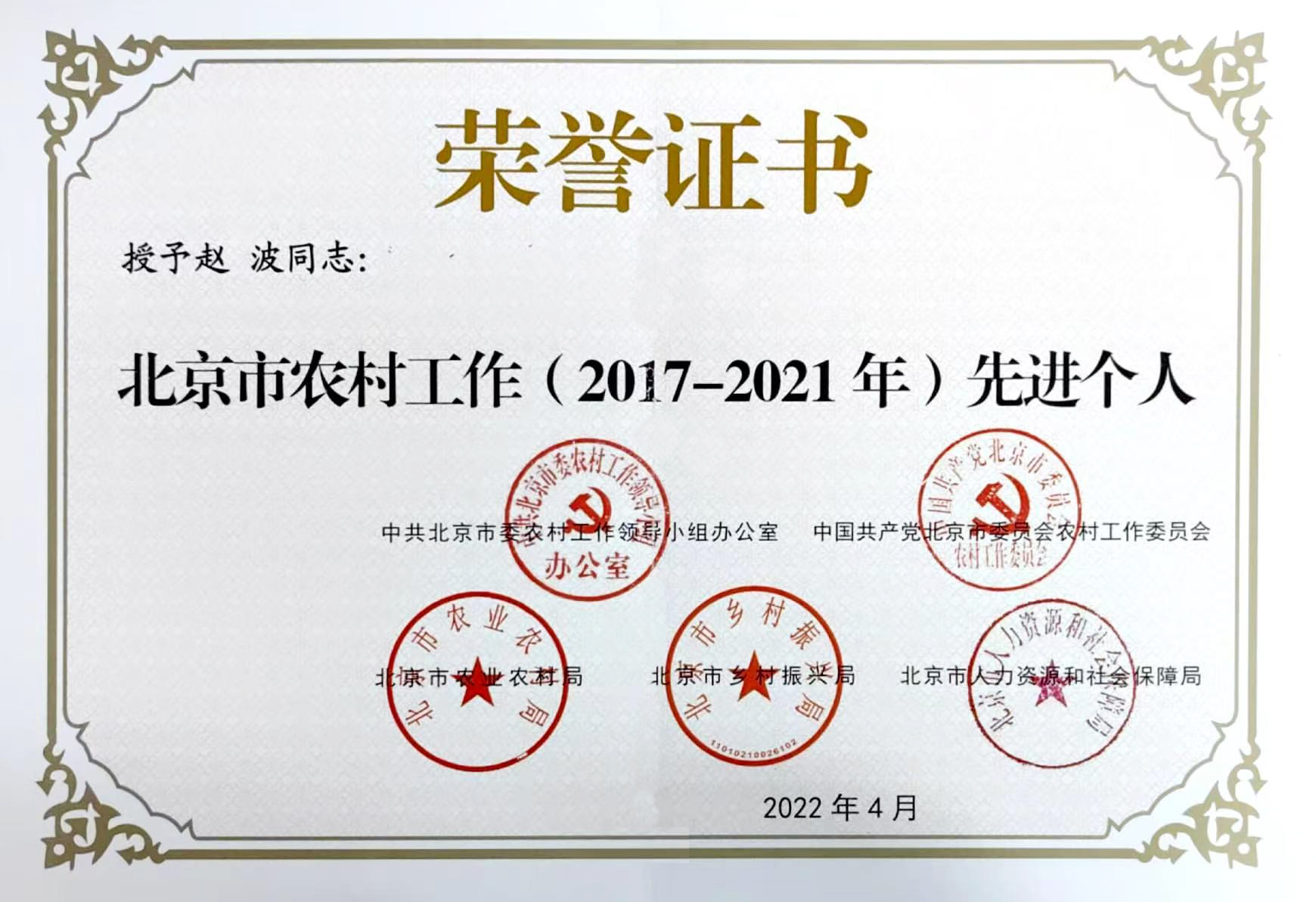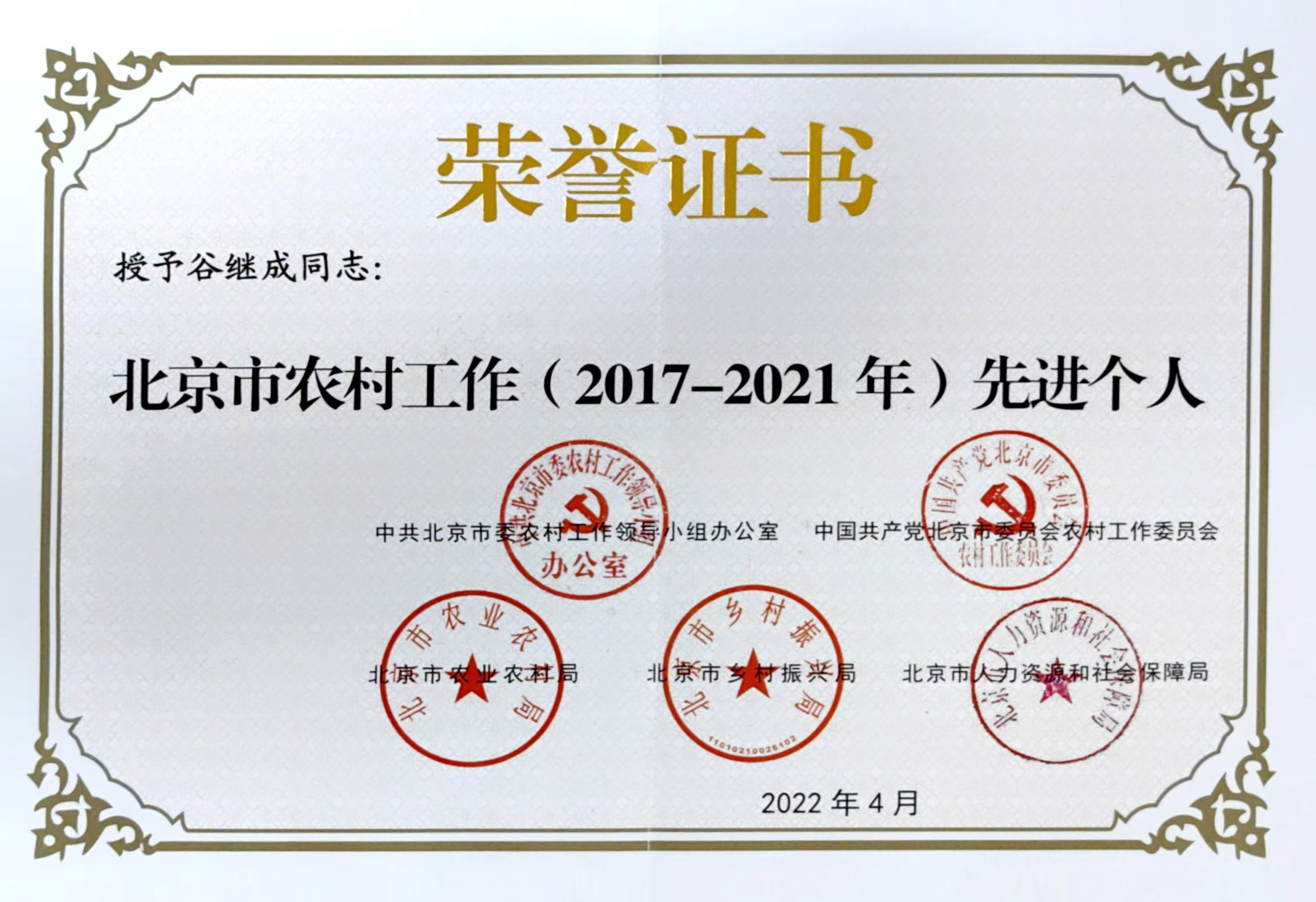 太阳成集团tyc151cc谷继成副教授、赵波副教授 荣获“北京市农村工作(2017-2021年)先进个人”称号