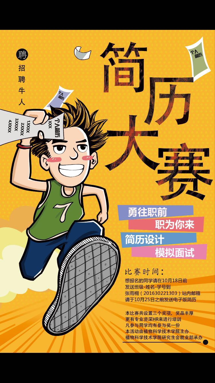 2018届毕业生就业工作即将启动,为增强2018届毕业生就业自信心,提高职场竞争力,太阳成集团tyc151cc将举办2018届毕业生简历制作大赛。此次比赛将邀请资深人力资源管理人员向各参赛选手进行指导,参赛者为自己设计的一份优秀的简历,展示个人风采。