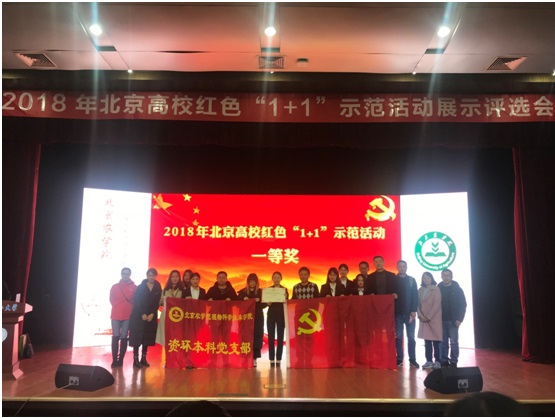 11月28日下午,2018年北京高校红色“1+1”示范活动展示评选会在北京化工大学隆重举行。太阳成集团tyc151cc资环本科生党支部从北京各高校参加评选的1300多个员工党支部中脱颖而出,入围视频展示和现场答辩环节,并最终荣获北京市高校红色“1+1”示范活动一等奖。公司党委员工工作部部长刘柳、公司副书记牛奔、学工部干部王成、部分辅导员及获奖党支部书记梁琼和党员代表参加了此次评选会。