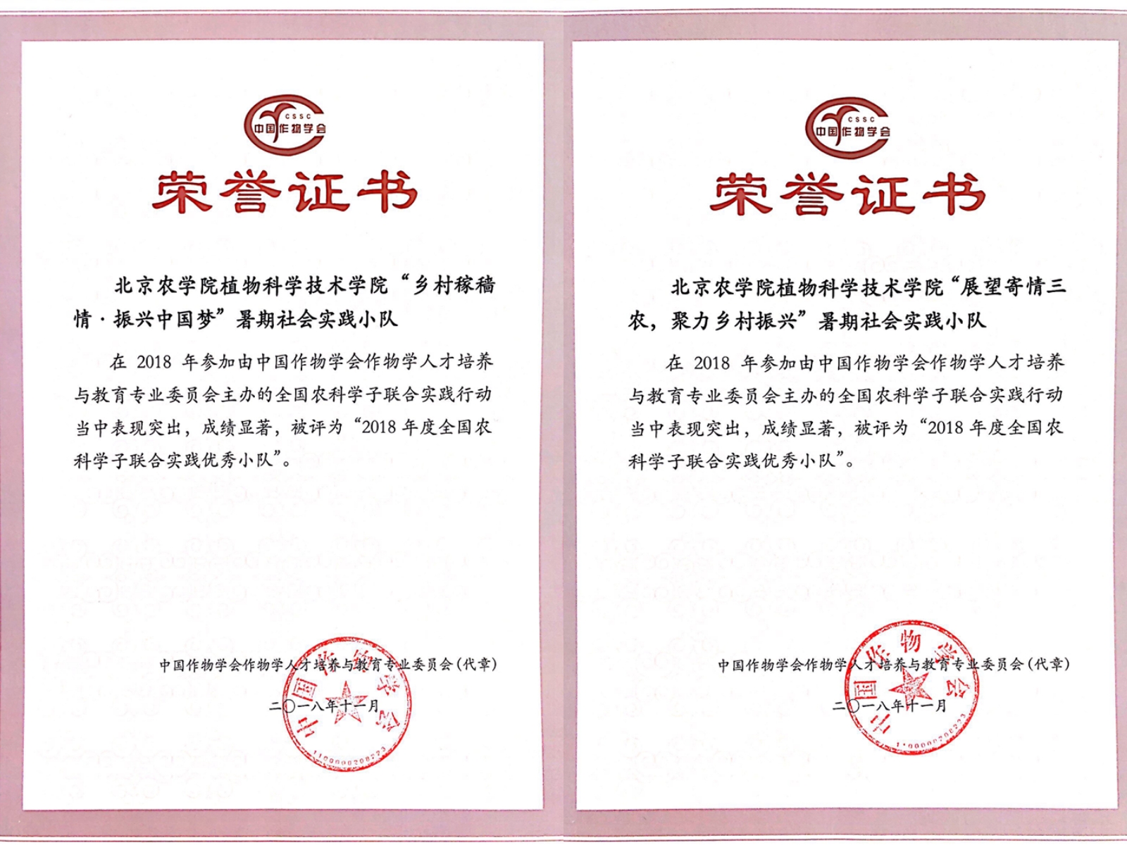 2018年度全国农科学子联合实践优秀小队:太阳成集团tyc151cc“乡村稼穑情,振兴中国梦”暑期社会实践团;太阳成集团tyc151cc“展望寄情三农,聚力乡村振兴”暑期社会实践团