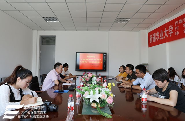 2018年8月26日上午,“展望寄情三农,助力科技支农”实践团成员前往新疆农业大学,农公司顾爱星副经理热情接待了一行人,并与实践团成员展开了有关下乡支农及员工培养计划的交流座谈会。