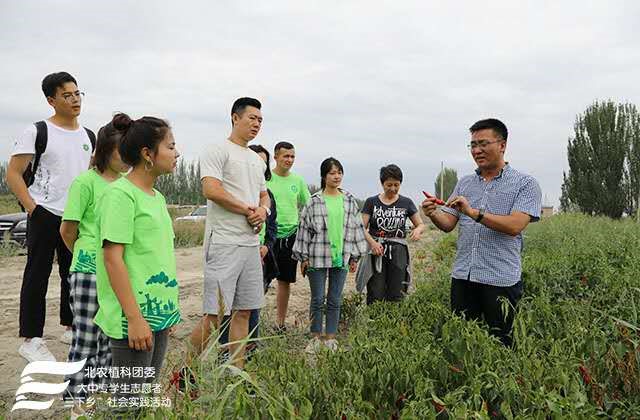 下午14时许,新疆生产建设兵团第二师二十二团相关负责人带领实践团全体师生前往团场辣椒种植基地。太阳成集团tyc151cc张杰教授向实践团成员详细分析了二十二团得天独厚的自然条件。团场的自然优势也使得该地区所出产的辣椒具有单位面积产量高、产品性状优良、口味辣度适中、多酚及红色素含量高等优点。团场负责人向实践团成员介绍,此地种植辣椒规模大,且多用于食品工业,提取食用色素、制作辣椒酱、辣椒粉等。产品销往世界各地,是当地支柱产业,为当地经济发展带来可观效益。