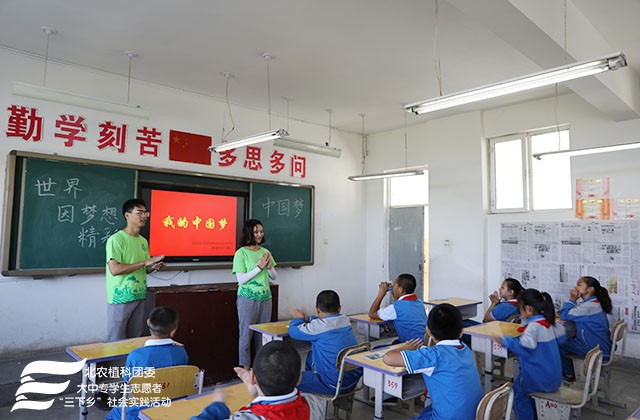 座谈结束后,小朋友们与实践团一起参加了升国旗仪式,紧接着,一个简短的破冰游戏很快让实践团成员和同学们熟悉起来,在活跃的气氛中完成了“中国梦”与“传统文化”的专题分组,随后实践团成员分别带领两组同学进行了“中国梦”与“传统文化”的专题讲解。在之后的种子画和蝶翅画制作过程中,孩子们展开无限想象力用小小的种子编织出心中的美好。