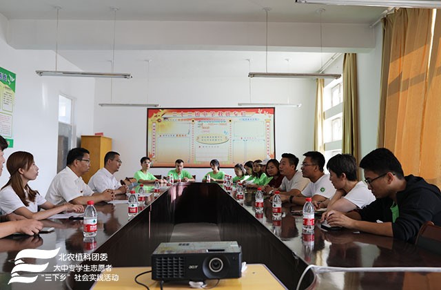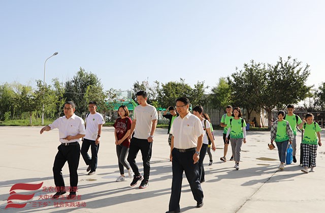 2018年8月28日,“展望寄情三农,助力科技支农”实践团前往新疆生产建设兵团第二师二十二团中学支教。上午10:00,实践团抵达二十二团中学,与党支部书记广建伟、刘权石董事长、办公室主任刘豫进行简单座谈,牛奔老师向校方介绍了实践团带队的教学副经理张杰老师、农业应用新技术北京市重点实验室副主任杨柳老师、团委书记郝娜老师及九位员工,并说明此行的目的——“建立长期友谊,大手拉小手,助力边疆员工成长成才”。对此校领导表示热烈欢迎与支持,并期待将联谊做长做久,传递爱与希望。
