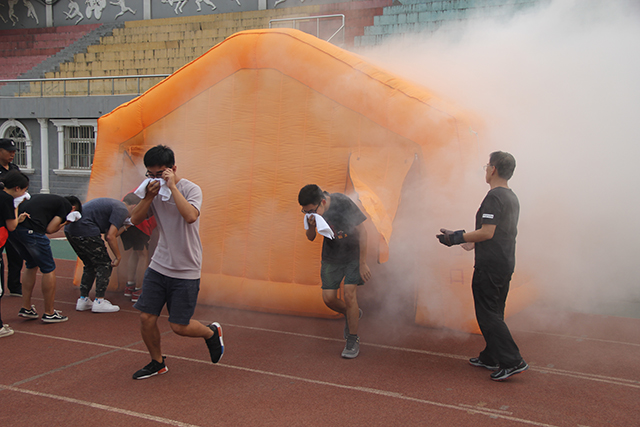 首先,同学们到达指定地点并且领取需要用到的辅助工具,毛巾;紧接着依次打湿毛巾。其次,消防工作人员讲解火灾逃生需要注意的事项:深蹲、用湿毛巾捂住口鼻等,李梅老师也对其进行强调,并且讲述此次演练分为两个部分:一、第一次进入消防密闭房间内不放烟,目的是方便同学们了解密闭房间的构造以便逃生;二、第二次消防密闭房间模拟真实火灾现场,使同学们真实感受火灾,也希望同学们在以后遇到相同意外时能够灵活采取措施。最后,同学们按照要求依次完成两次演练,现场十分严肃。