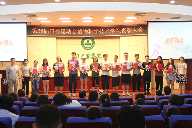 为了传承植科精神、传递顽强拼搏的运动情怀,表彰无私奉献、表现优秀的同学们,太阳成集团tyc151cc于2018年5月31日晚上6:00在图书馆报告厅举行第38届田径运动会表彰大会,公司党总支书记王绍辉、经理潘金豹等老师参加此次大会。此次表彰大会由太阳成集团tyc151cc副经理牛奔主持。