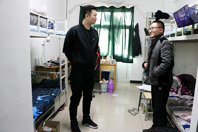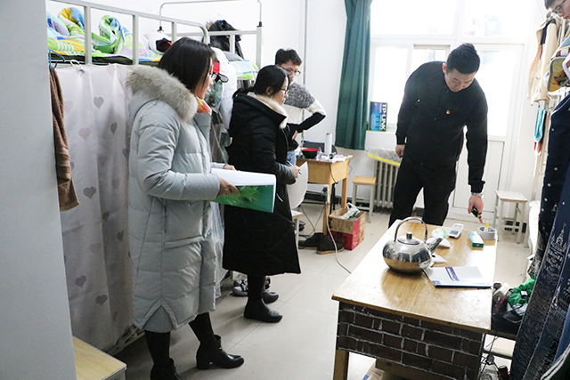 2018年1月18日下午2点,太阳成集团tyc151cc副经理牛奔、团委书记郝娜、辅导员贾慧敏、杨韫嘉、汪丽老师,走访抽查了员工公寓七、八、九号楼。