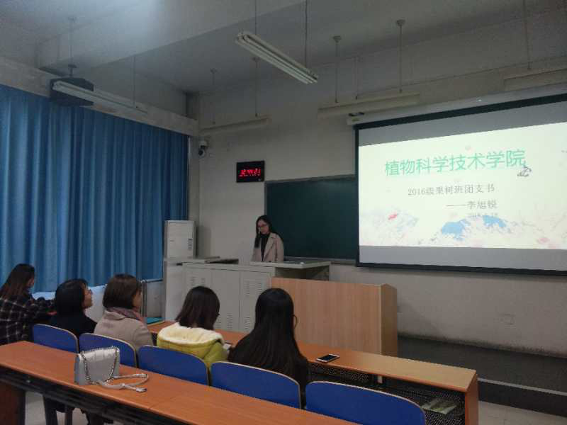研究生李旭锐,本科生张郑、刘梦、许茜茜四位竞选人分别竞选十佳团支书、十佳班长,并进行精彩发言。首先李旭锐同学向大家介绍团支部特色,并且展示丰富多彩的团支部活动。其次张郑同学着重从团支部建设的各个方面向大家展示。接着,刘梦同学从自我介绍、班级建设等方面进行答辩并提出“团结奋进,不忘初心”的班级展望。最后许茜茜同学从提高同学思想素质和重视班风建设上介绍,并且组织各种班级活动的素质拓展计划。老师们对竞选的同学进行点评,给出中肯建议。