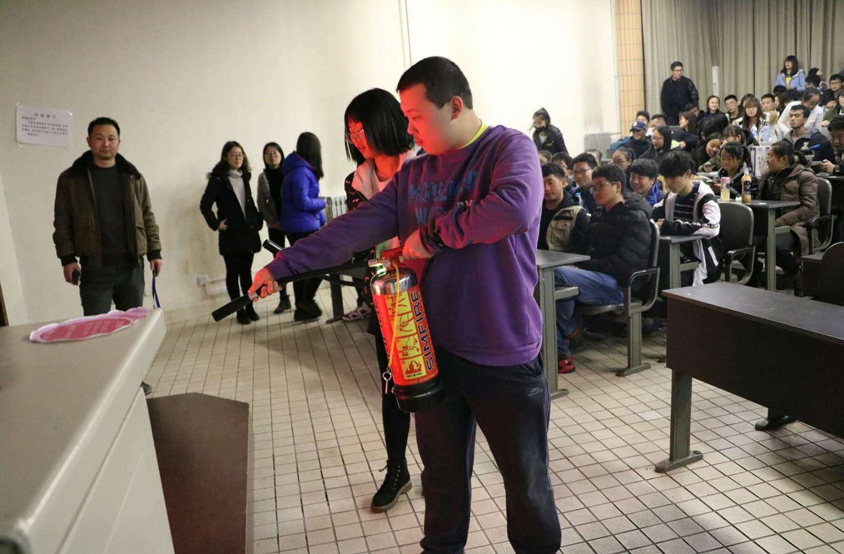 李老师为同学们介绍了干粉灭火器“提”、“拔”、“对”、“压”四个步骤的动作要领,随后每位同学都亲自操作使用灭火器模型,李老师也站在一旁及时指正不规范的动作。同学们也真正掌握了常见灭火器的使用方法。此次活动李老师生动有趣的讲解让员工增强了消防安全意识,亲自使用灭火器也让员工学会了如何使用简单的消防器材,树立了正确的消防安全意识。