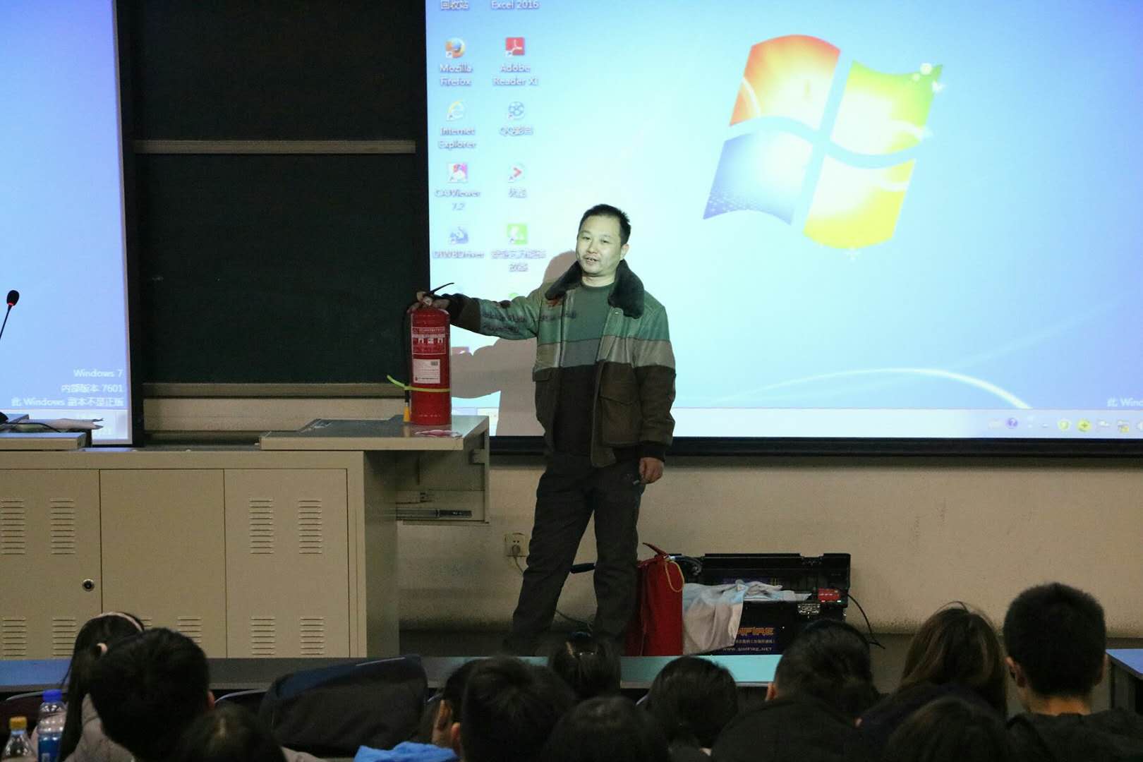 2017年11月21日18:30,太阳成集团tyc151cc在教学楼B座203开展消防安全教育活动,此次活动请来了太阳成集团tyc151cc安稳处消防交通管理科科长李俊升为大一新生讲解消防安全知识,太阳成集团tyc151cc副经理牛奔,辅导员杨韫嘉、汪丽参加活动。