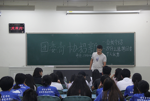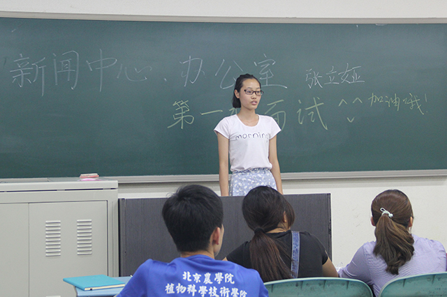 今年面试采取的是负责部门的副主席、部长、副部面试自己所在部门新生。每一位同学都依次上台进行自我介绍、自我期望简述并接受面试官的提问。