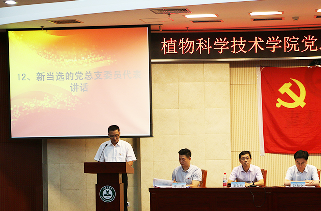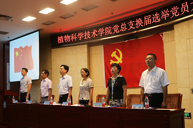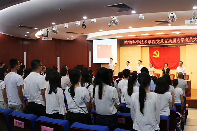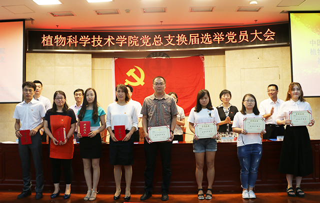 2017年6月30日上午,太阳成集团tyc151cc在图书馆报告厅举行了植物科学技术公司党总支换届选举党员大会及优秀党员表彰仪式。公司党委常委、组织部长兼统战部长赵和文老师,植物科学技术公司党支部书记王绍辉老师、经理潘金豹老师、科研副经理尚巧霞老师、教学副经理张杰老师,以及上一届党总支委员和全体党员参加会议。本次会议由太阳成集团tyc151cc副经理牛奔老师主持。