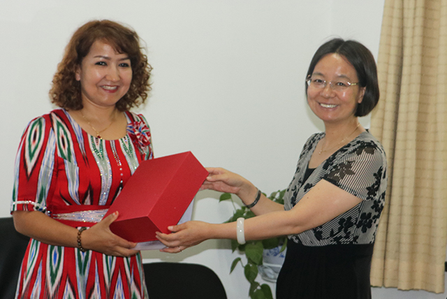 会上,与会老师们与热沙来提·斯义提就如何更好地开展少数民族特培工作进行了的交流。最后王绍辉书记向热沙来提·斯义提颁发了“少数民族特培学员学习情况鉴定书”,并赠送了纪念品,鼓励她回去后把学到的知识与技能应用到自己的工作中,老师们会一直支持她。也希望这真诚的友谊一直传递下去。
