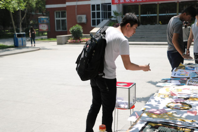 中午12点整,植科员工会的成员准时到达礼堂前组织起了投票活动。路过的同学纷纷被匠心独出的种子画吸引了目光,不少同学驻足停下为自己心目中的最佳作品投上了自己宝贵的一票。粒粒的谷物散发出认真勤恳的精神,多样的图案表现出同学们创新的品格。众多作品都赢得了投票者的青睐,优秀作品脱颖而出。但今日现场投票的票数并不是此次比赛的最终结果,后续进行的网络投票与现场投票票数总和才能决定出冠亚季之分。