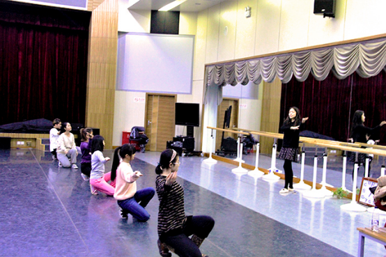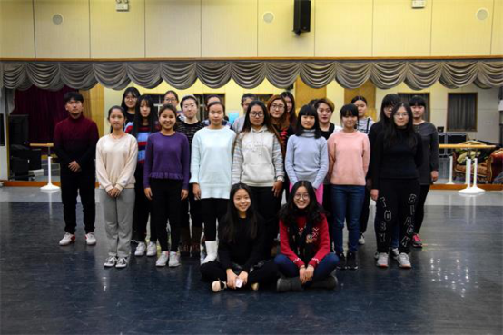 白宜琳穿着专业舞鞋在最前边一个动作一个动作细心的教,身后的同学们也都耐心的一点一点的跟着学。大到整体姿态,小到手指动作,白宜琳都认真地教学。学习的同学们也都十分高要求的纠正自己的舞姿。教练教动作的时候目不转睛的跟着学,教练纠正他人动作时便自己体悟动作要领。一个小时下来,舞蹈开始的几个动作所有同学已做的十分熟练并有了几分柔美的气韵。训练结束后,全部到场的同学一起合了影,大家有说有笑,气氛轻松愉快。