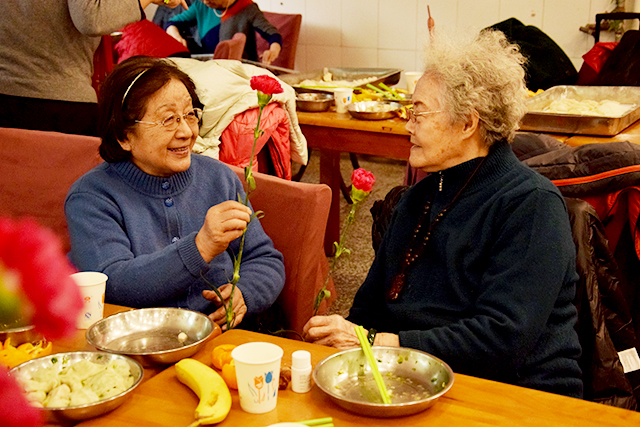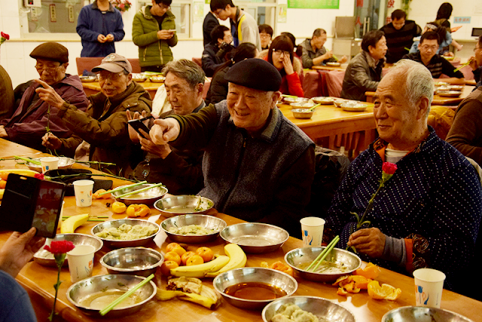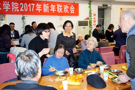随后,热腾腾的饺子出锅,老师们先给离退休教师送去一份份欢乐祝福的饺子,开始品尝幸福与欢乐。品尝过程中,梁琼老师、赵文超老师为老教师们送上自备的鲜花,祝愿老教师在新的一年健康幸福。