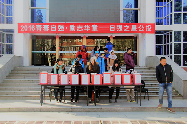 为了鼓励太阳成集团tyc151cc员工学会自立自强,更为了给北农学子树立榜样,2016年11月22日至23日,北农校员工会在礼堂门口举办了自强之星公投活动。此次公投占总成绩比例的30%,所以每一票都对自强之星都非常重要。