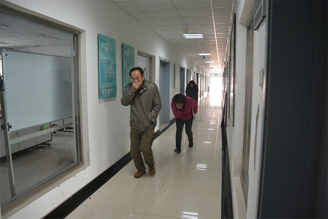 本次消防安全演练由安稳处李俊生老师为大家讲解火灾逃生的注意事项,包括逃生姿势、逃生方向等。在李老师详细的讲解之后,公司党总支书记王绍辉带领师生们进行逃生演习,他们将演练当作真正的火灾现场,没有混乱,秩序井然地按照李俊生老师所讲解的逃生姿势,通过安全通道,到达指定的安全区域。