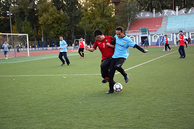 上半场比赛中,我方多次精彩长传和射门赢得了看台上观众们热烈的掌声和助威声。下半场我方重新调整队形、变换策略,由之前的保守踢法,转换成了进攻的态势。最终植科6:0战胜了生物公司。