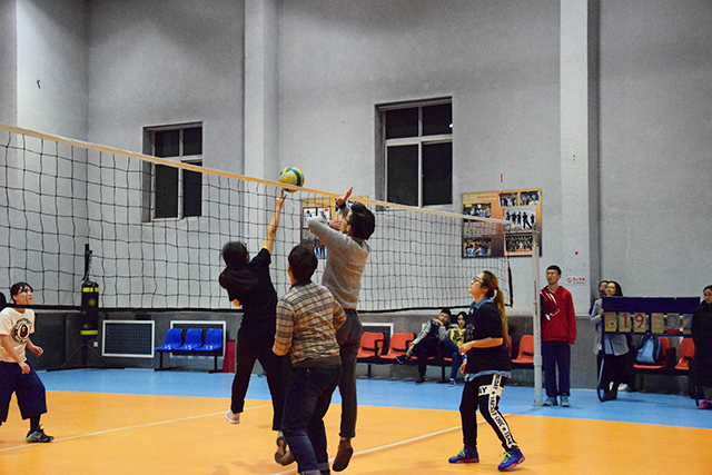 2016年11月8日下午5点,公司与动物科学技术公司在跆拳道馆展开了排球的较量。