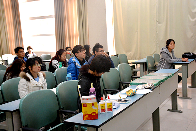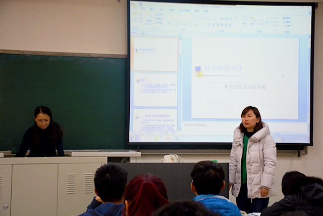 首先,由郝娜老师主持介绍了制作标本画的目的,让同学学会自制植物标本,开拓自己的知识层面。然后,由覃晓春老师详细讲解标本画的种类和制作过程以及标本画和标本的区别。讲解过程中,覃老师声情并茂,台下的同学也认真学习、主动讨论,并且构思自己的标本画。