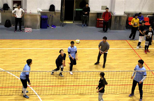 下午5点,比赛准时开始。上半场植科与国院展开了精彩的对决。一个个精彩的扣球与吊球点燃了赛场的气氛,也使植科队员斗志昂扬。国院的队员们也不甘示弱,一次次强有力的发球、拦网,为国院带来了骄人成绩。双方队员们在赛场上挥洒汗水、奋力拼搏,每一个传球都凝聚着智慧与团结,每一次接球都尽显他们青春的活力。整个赛场上充满呐喊、助威、喝彩、拼搏、活力。虽然第一场植科队员们不敌对手,以10分之差输了。但是他们毫不气馁,在第二场开始前相互鼓励,并在第二场比赛中与对手比分一直僵持不下,开始了胶着之战。比分16:16、18:18……在一球球的穷追不舍下,终于以25:22赢得了第二场。最终以1:1的结果结束了比赛。