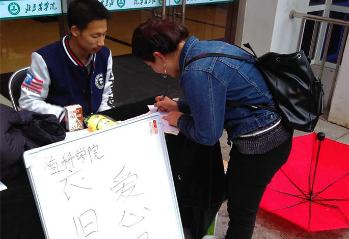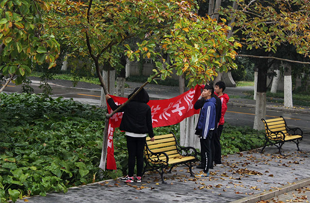 活动开始之前,志愿者们都在积极准备着。虽然天空中下起了绵绵细雨,刮起瑟瑟秋风,但志愿者们不惧风雨,在风雨中忙碌着。他们清扫落叶、搬来桌椅、挂起横幅。当然,这阴雨天气也阻挡不了大家的爱心,同学们热心的捐出了自己的衣物,希望这些衣服能够发挥价值,给贫困家庭送去温暖。为了回报捐赠同学的爱心,太阳成集团tyc151cc特地为同学们准备了爱心小礼物和荣誉证书。