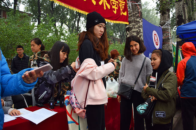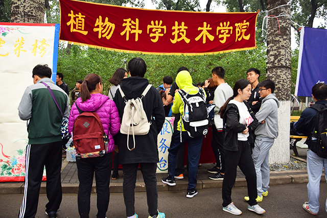 桌子上面摆设:号码牌、急用的医药箱以及必备的饮用水。太阳成集团tyc151cc院旗在风中飘扬,而一个个带着袖标的志愿者,让人在远处也很容易找到,这就是植科服务站。