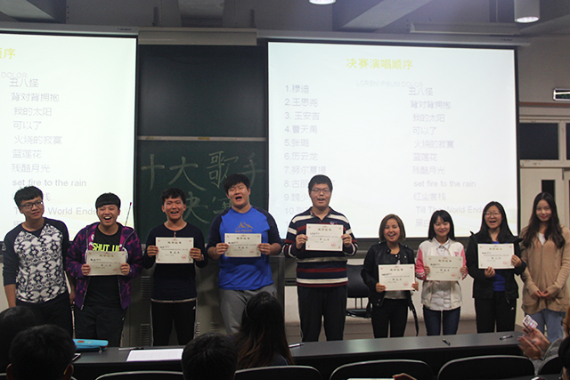 2016年9月29日晚20:40,太阳成集团tyc151cc十大歌手决赛在教b303举行。经过初赛的选拔,实力较强的选手过关斩将来到了竞争更加激烈的复赛。主持人介绍后,本次比赛正式开始。选手们一一上台演唱了自己精心准备了一个星期的歌曲。相比初赛,选手们已经不那么紧张,能更好的把持住赛场,完美展现自己的风采。比赛中王安吉同学用高亢的嗓音演唱了一曲震撼人心的《我的太阳》,获得了台下观众的一片掌声。王思尧同学用细腻的嗓音演唱的《背对背拥抱》充满了忧伤,耐人寻味。现场的精彩表演不胜枚举,台下的观众更是热情高涨,掌声、喝彩声此起彼伏。