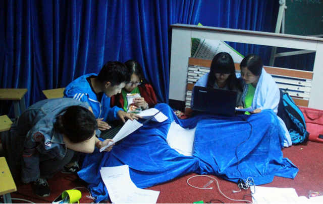 调研期间的每天晚上,实践团队成员都会坚持做好数据整理的基础工作。即使刚下完雨的山区夜晚,温度低是不可否认的事实,队员们也相互配合,努力完成了数据整理工作,奋战到深夜。即使是生病的队员也没有提前离开而是坚守在电脑前,有的队员抵不住繁重调研的疲倦,倒地稍作休息……