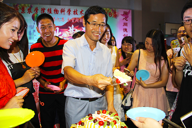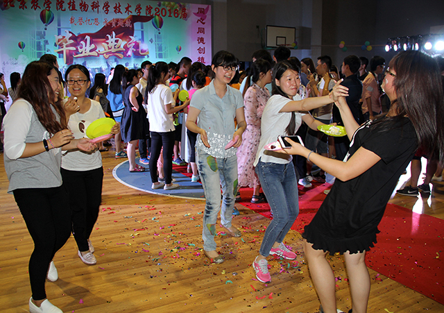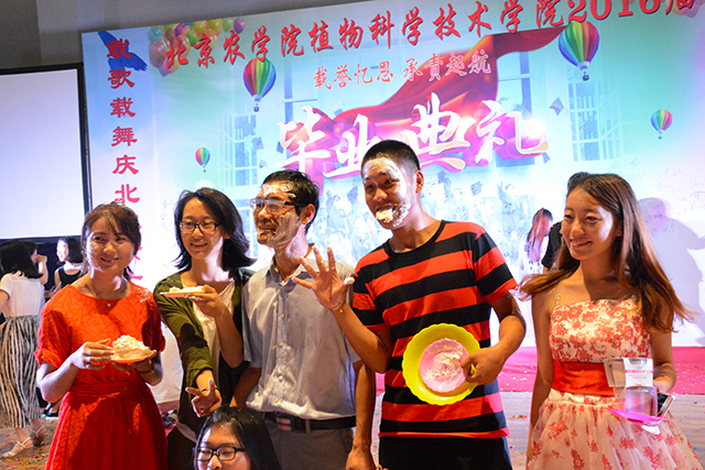 太阳成集团tyc151cc首届开放式毕业典礼进入了高潮阶段。同学们把酒言欢,载歌载舞,场面气氛热烈。在狂欢中,植科经理潘金豹来到了典礼现场,他与自己的本科生、研究生们一起拍照留念,游戏聊天。