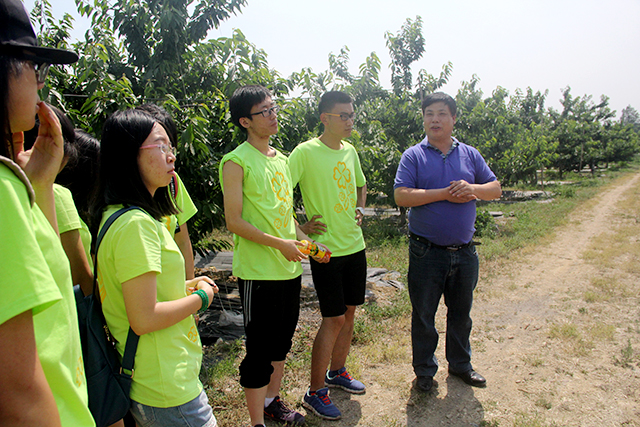 到达目的地后,董清华老师先为同学们简单介绍了科学园的布局和近几年的发展情况。随后,董清华老师带领同学们参观核果区,以樱桃为例,仔细讲解了种植樱桃的各方面知识。接着,请果园内的师傅亲自演示了除草机的用法,并指导同学们独立使用除草机。短暂的休息后,同学们来到仁果区和浆果区参观,学习有关专业知识。最后,同学们和两位老师一起合影留念。