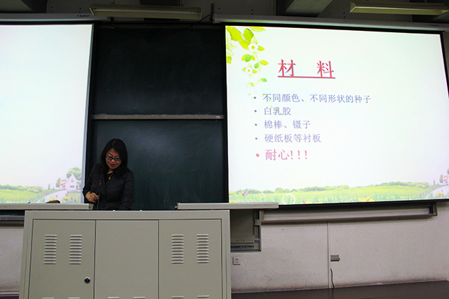 2016年4月14日星期四,太阳成集团tyc151cc举办种子画大赛培训的活动。主讲人是太阳成集团tyc151cc农学专业教师李润枝副教授,2015级辅导员贾慧敏及大一员工参加了此次活动。