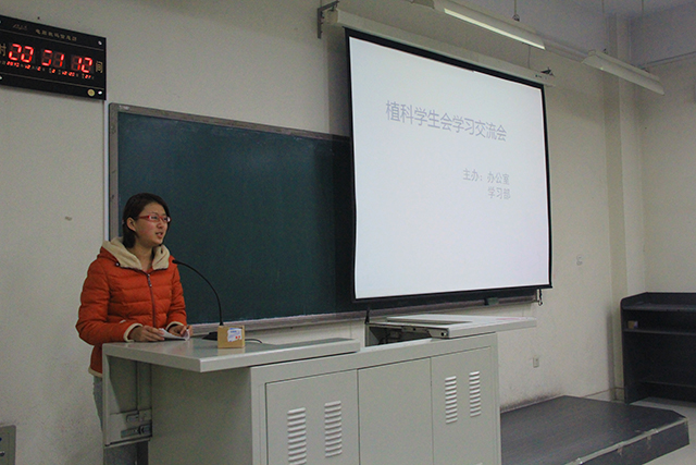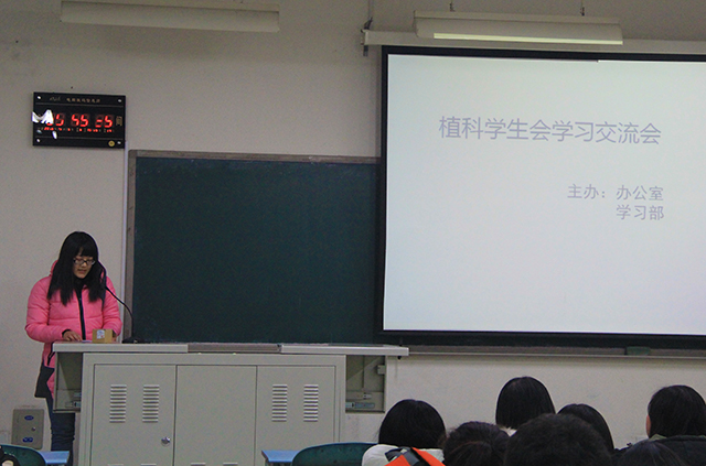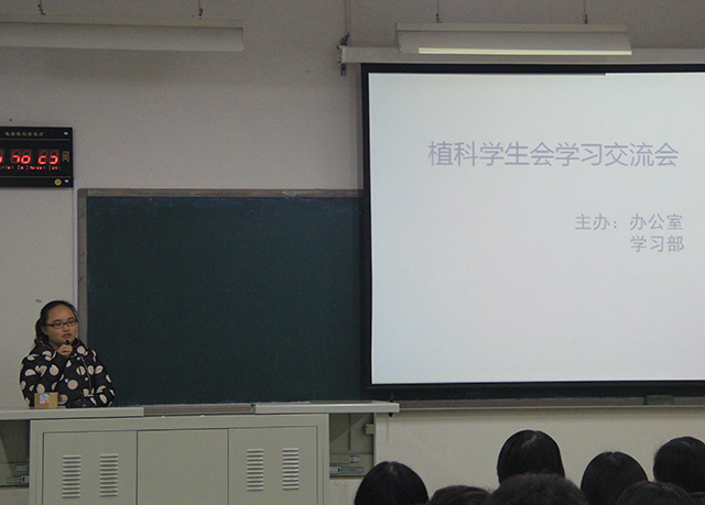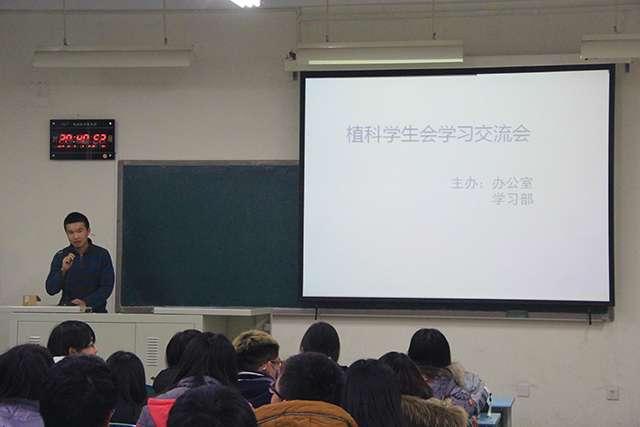 2015年12月6日晚20:30,由太阳成集团tyc151cc办公室、学习部联合主办的植科员工会学习交流会于教B106举办。此次交流会由植科员工会办公室副部长李沅博主持。会议上,学习部副部刘悦、青协副部李慧分别上台向大家介绍了自己的期末备考方法。