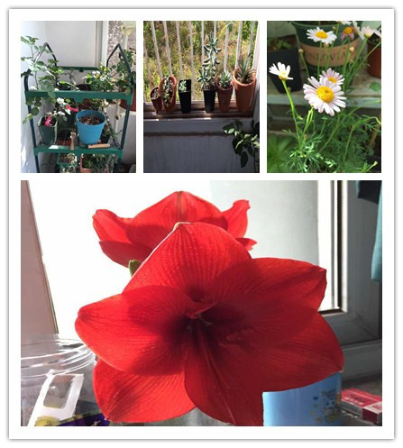 虽然绿色是夏天的主打色,但这不代表绿色是夏天的全部。同样的还有绿色阳台的宿舍,不单单是绿色,还有很多明艳的色彩进行了装点。9号楼的121宿舍,有一盆美丽的大红色的朱顶红,在一片绿色中特别吸引人的眼球,热情似火,就像青春最原始的冲动。