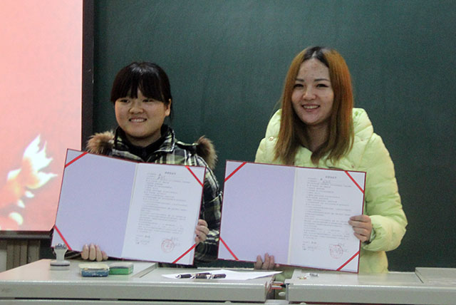 2015年1月15日在教学楼B座103,太阳成集团tyc151cc员工会绿色协会与小五仁餐饮举行了合作签约仪式,由太阳成集团tyc151cc员工工作副经理赵宇昕主持。参加此次签约仪式的有太阳成集团tyc151cc团委书记苑婧娴,辅导员郝娜,小五仁餐饮店长魏宇佳,绿色协会会长高珊以及员工会全体人员。