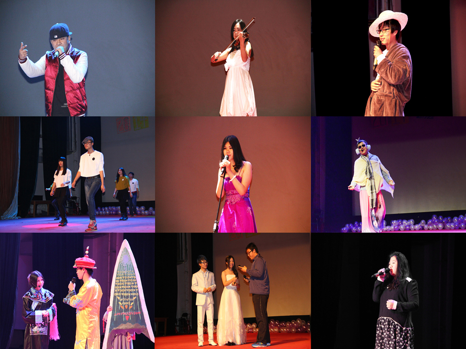 这次的晚会寓教于乐,特别能带动人心。开幕前,放映了很多记录这快结束的一个学期中同员工活的点点滴滴,给人感怀,节目过程中还穿插了一些特别的活动,让同学对父母表达一声感激与爱,记录其父母的反应,请一些同学在台上当着大家的面给自己的老师父母或朋友打一个电话表达感恩。晚会全程,屏幕墙上都播放着同学们的短信留言。