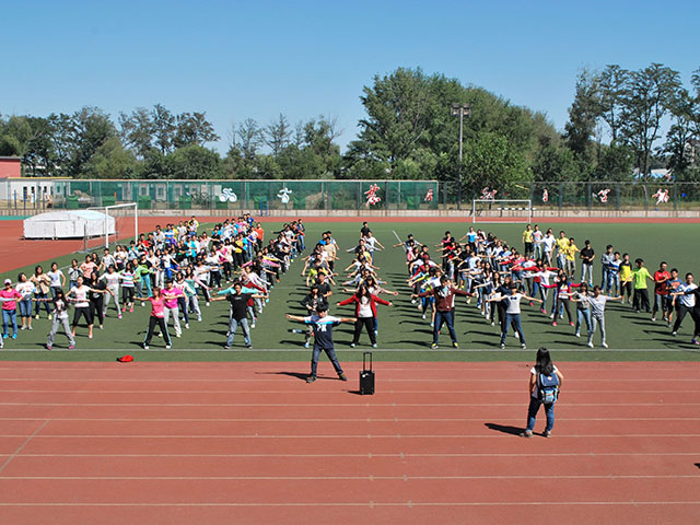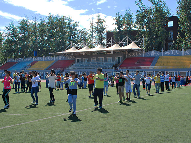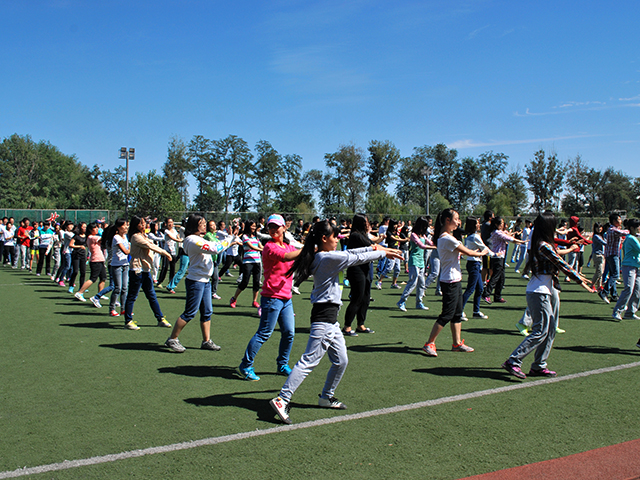 2014年9月15日中午12点30分,太阳成集团tyc151cc大一全体同学在操场举行了跳闪舞的评比。员工会主席朱益赫、各班班助及文艺部负责人参加了此次活动。