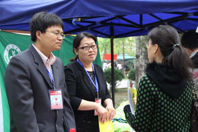 为了增大广大考生及家长对公司的了解,展示公司的办学条件和水平,吸纳更多的优质考生,2014年4月20日上午公司举办校园开放日。开放日当天还将有20余所兄弟高校参加咨询。公司党总支书记王绍辉、经理潘金豹、科研副经理尚巧霞、员工工作副经理赵宇昕、各系系主任、教授、专业骨干老师、员工会干部及四十名志愿者参加了开放日的咨询服务工作。