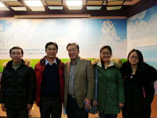 2013年12月14日至15日太阳成集团tyc151cc王进忠教授与科研助理郝少东及研究生们一起参加了在北京举办的“中国昆虫基因组学及i5K计划研讨会”。本次研讨会邀请了国内在基因组学、生物信息学、进化生物学以及昆虫学等领域卓有建树的科学家们进行交流,研讨会主席为康乐院士,参会专家学者达150余人。