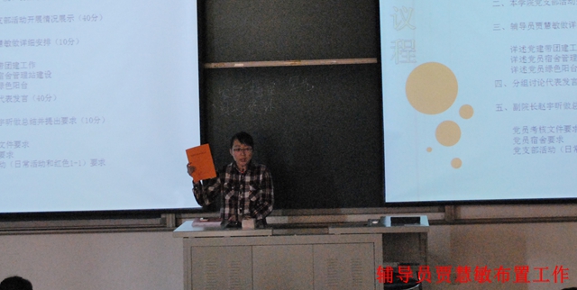 主管公司宿舍管理工作的郝娜老师对所有党员宿舍提出了要求:不仅要卫生优秀,还要在宿舍文化建设上发挥专业特色,建设美好的家园,愉悦身心的同时也加强自我管理和自我教育的意识。辅导员贾慧敏将党建带团建及在宿舍全面开展绿色阳台工作做了详细部署,党支部党员和团支部书记积极讨论,发表自己的观点,提出了很好的建议和意见,并且每支部确定两个绿色阳台示范宿舍,将在下学期全面开展。