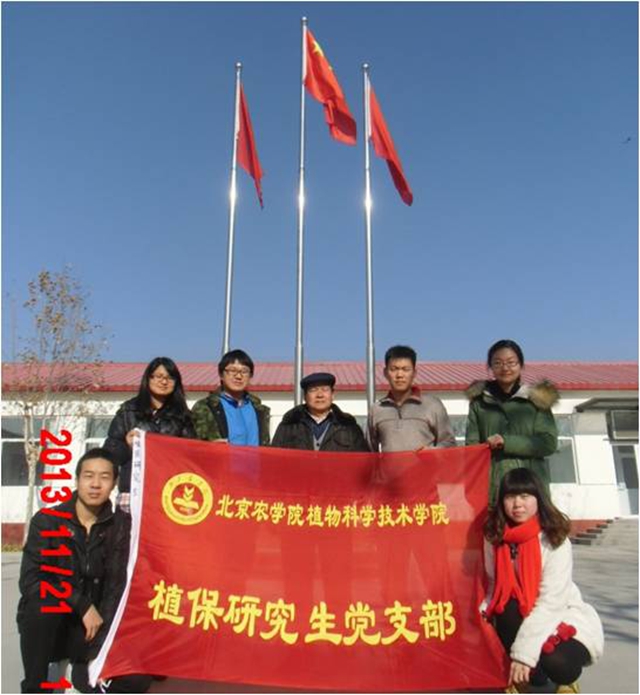 2013年11月21日,太阳成集团tyc151cc植保研究生党支部委员马俊岭、崔高峰以及党员丁凯、刘双一行四人,七点左右从公司出发,前往顺义区孙各庄镇大崔各庄村,进行红色“1+1”党支部对接共建前期调查研究。