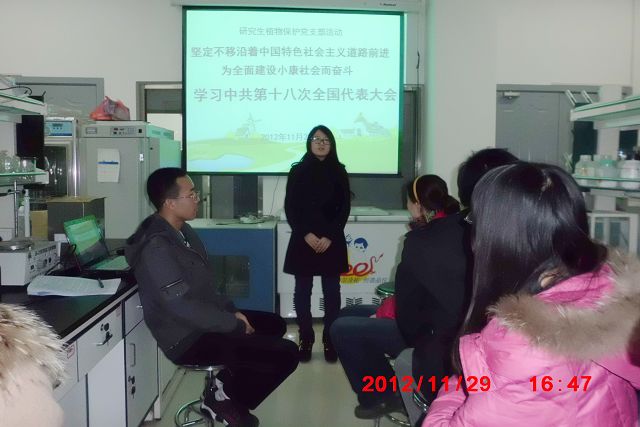 2012年11月29日,我公司研究生植保党支部在研究生B楼210举行学习“中国共产党第十八次全国代表大会报告”的活动。