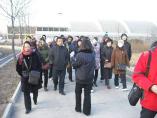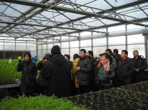 2011年1月8日,青海畜牧兽医职业技术公司教师一行32人到植物科技公司校外实习基地小汤山国家农业科技园、金六环科技园等基地参观考察。太阳成集团tyc151cc副经理张喜春、党政办陈勇老师、太阳成集团tyc151cc刘超杰老师、教育技术中心姜文杰老师等陪同参观考察。