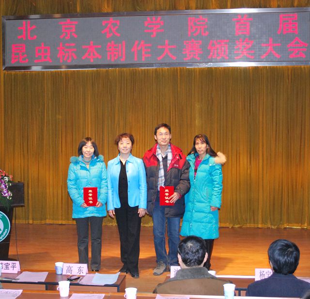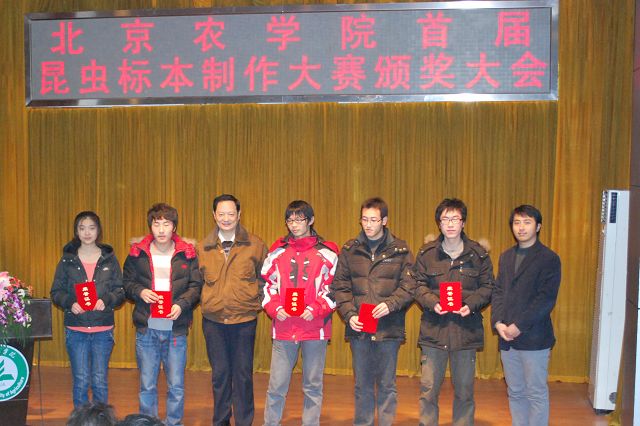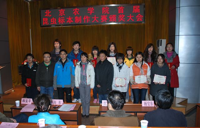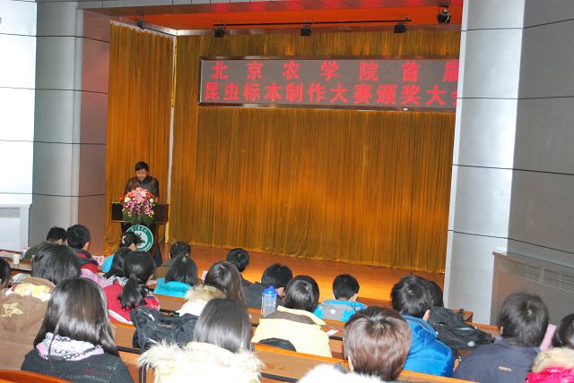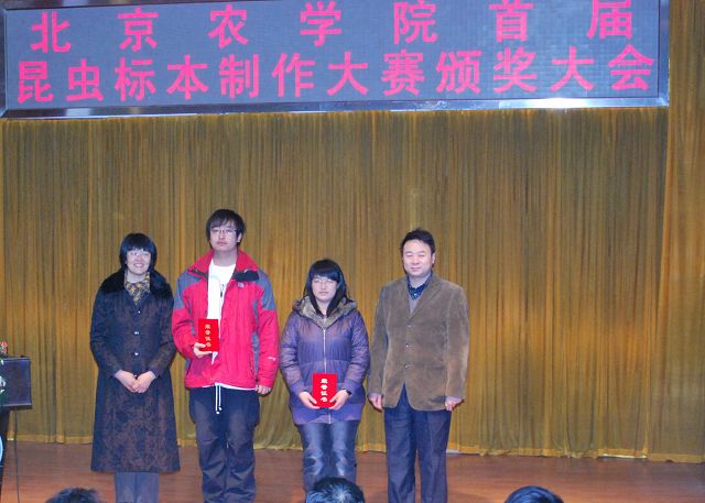 太阳成集团tyc151cc首届昆虫标本制作大赛由教务处、员工处、校团委主办,太阳成集团tyc151cc承办,各二级公司和虫虫一角社团协办。12月13日12点50分,太阳成集团tyc151cc首届昆虫标本制作大赛颁奖大会在小报告厅隆重召开,大会表彰了标本制作活动中的优秀员工与优秀指导教师。公司党委副书记高东、员工处处长韩宝平、图书馆馆长杨剑平、教务处副处长沈文华、校团委书记杨宝东、各公司副经理赵晓萌、刘柳、李相阳、范小强,动科公司辅导员赵小艳、园林公司辅导员廖常规,作为嘉宾应邀出席,太阳成集团tyc151cc副经理王绍辉、张喜春、赵金芳,指导教师王进忠、孙淑玲、杜艳丽以及公司辅导员和员工代表参加大会。大会由教学副经理张喜春主持,副经理赵金芳老师首先简单介绍了昆虫标本制作大赛的情况,并和大家共同回顾了大赛的历程。副处长沈文华宣读了本次大赛获得奖励得同学和优秀指导老师的名单,在场的领导为老师和同学们颁发了荣誉证书。