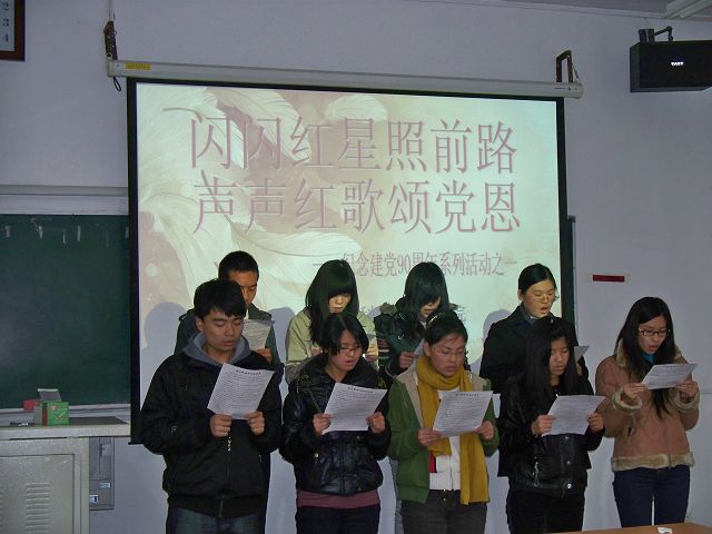 2010年10月28日晚8:20,太阳成集团tyc151cc植保本科生党支部在A103开展以“闪闪红星照前路,声声红歌颂党恩”为主题的活动。