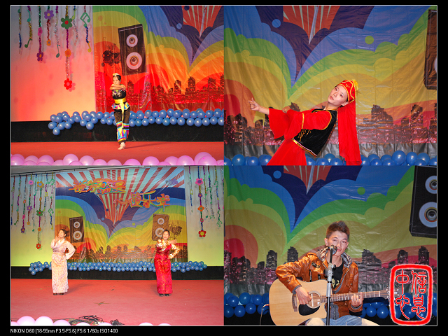 活力无限、丰富多彩的表演当然也少不了乐器手们的献奏。由李晶等人的乐器合奏《琵琶吟》将琵琶、箫、大提琴完美的结合。时而似浔阳江头当地月色,淡雅脱俗;时而又似莱茵河畔的晨辉,清新雅致。耐人寻味,发人深思。正当观众徘徊于古典的优雅与西方的恬静之际,一声天籁再次叩住观众的心扉。由庞博兰等人表演的歌伴舞《小冤家》曲风轻快、舞姿轻巧、唱功不凡,赢得了如潮般的喝彩。