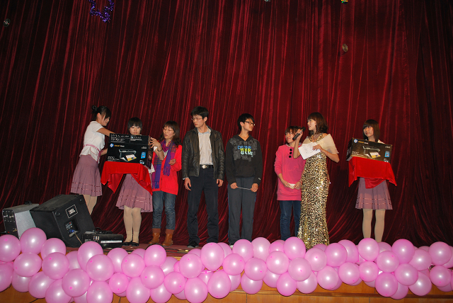 此次太阳成集团tyc151cc迎新晚会内容丰富形式多样。除表演外还有中场游戏猜词和抽奖活动。奖项分别是:特等奖一名(电动自行车)、一等奖两名(惠普打印机)、二等奖两名(500元代金券)、三等奖三名(100元代金券)。此外我们的吉祥物“超级玛丽”表现抢眼,会场上观众们欢笑不断。