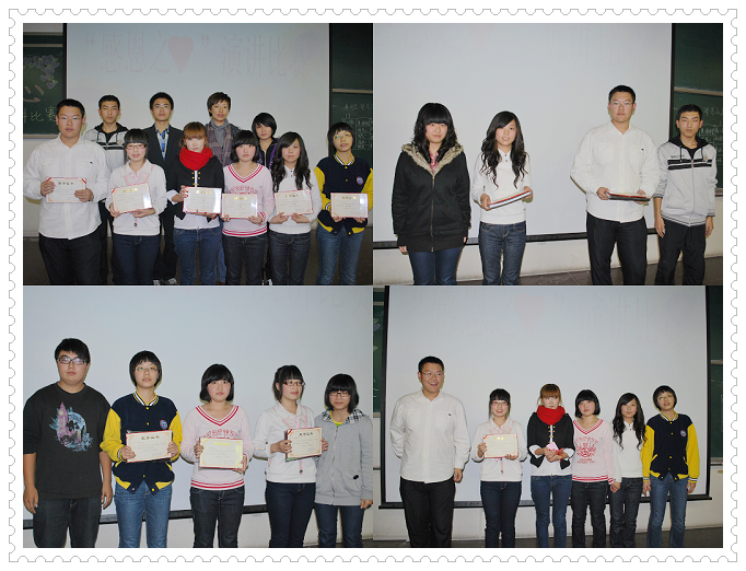 2010年10月18日晚6:30, 太阳成集团tyc151cc新生“感恩之心”演讲比赛在教A-103举行。辅导员马淑芹、员工会主席及各部部长参加并担任大赛评委。